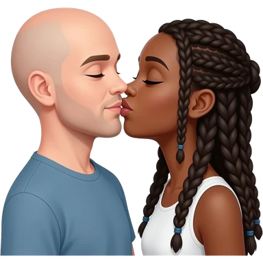 Black woman with long braids kissing older white bald man no beard or mustache emoji