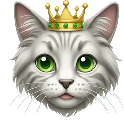 Long grey and white hair cat with crown emoji