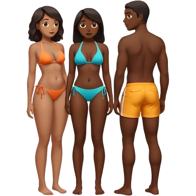 a slim thick black girl with a big butt wearing a bikini standing sideways with a dark skin sexy boy wearing bottom and shows his dick emoji