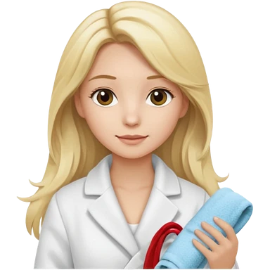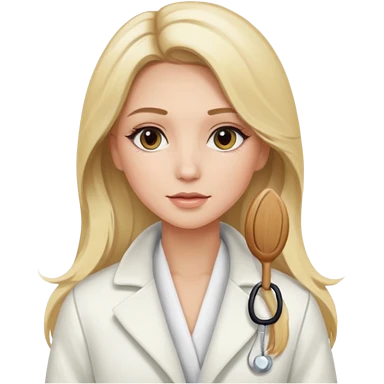 Cosmiatra en spa rubia con balayage cabello hasta la largo otro tino de rubia emoji