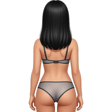 Woman in straight black hair, in bra and panties, back view emoji