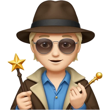 Un humain homme avec un chapeau et des sunglasse et une baguette magique emoji