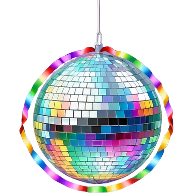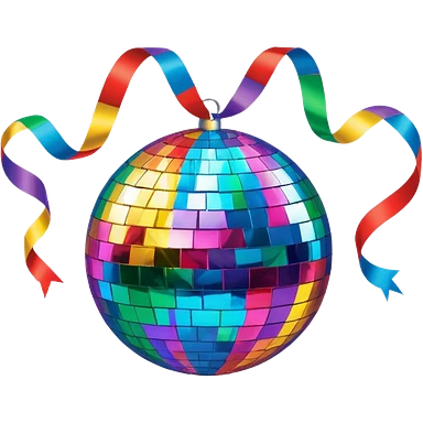 emoji: shiny disco ball with salesmail logo and streamers for New Year's emoji