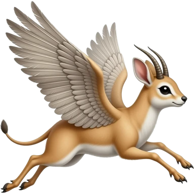 Eotrachyps 🦌🪽 – tiny antelope with feathers and wings, glides short distances, fast runner, herbivore. emoji