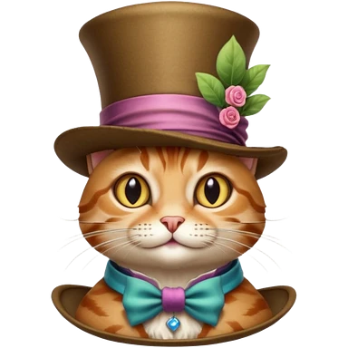 Realizza un gatto magico appena uscito dal cappello del cappellaio matto emoji