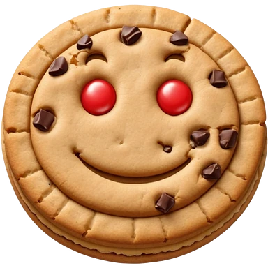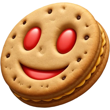 Emoji de un paquete de galletitas tipo pepas de membrillo, con algunas galletas redondas y el centro rojo visible. emoji