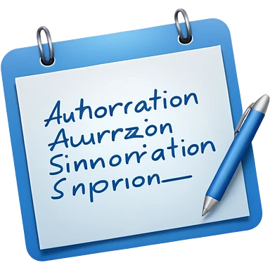 Emoji de una hoja firmada con una firma azul simulada y título “Autorización”. emoji