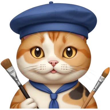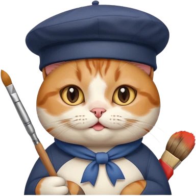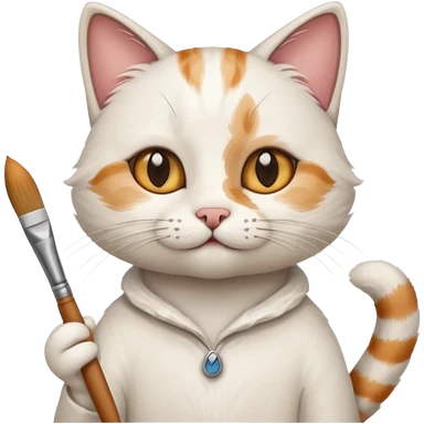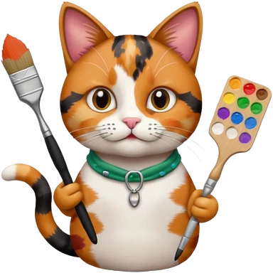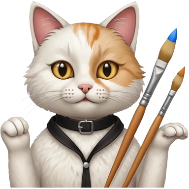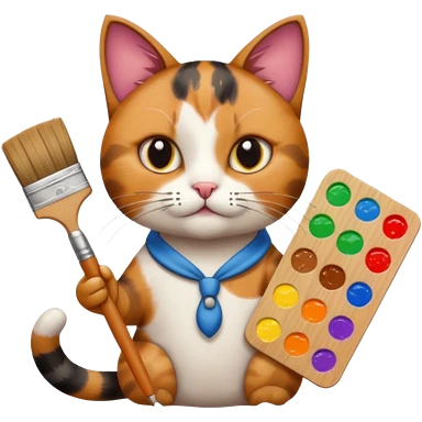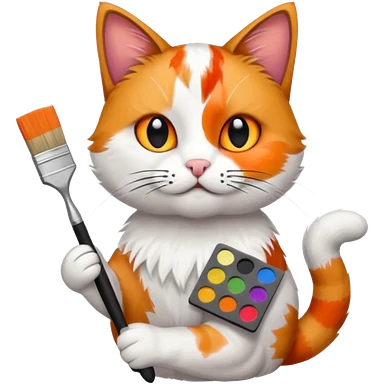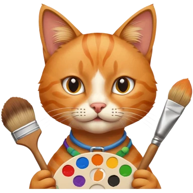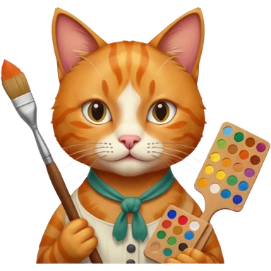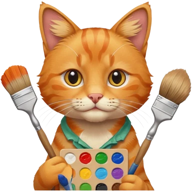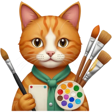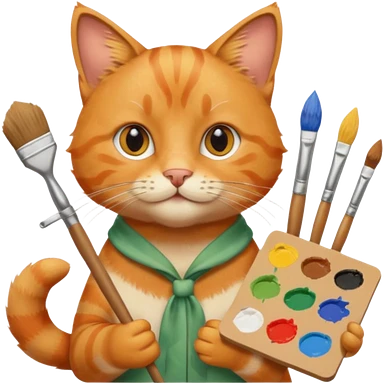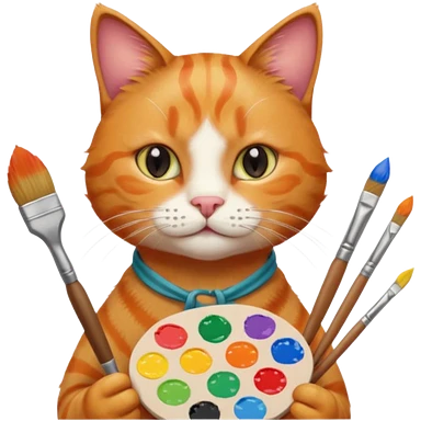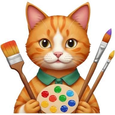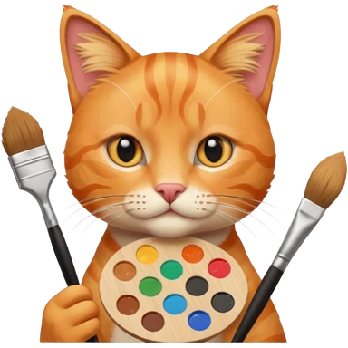A cat holding brushes and a colour pallete because he is an artist emoji