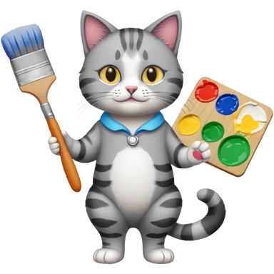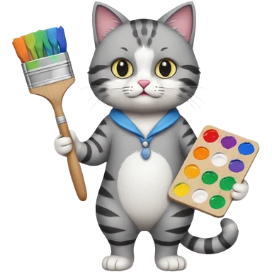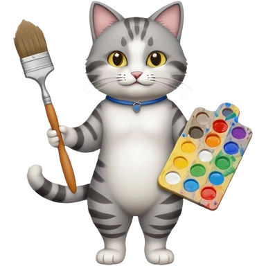 A full body cat holding brushes and a colour pallete because he is an artist emoji