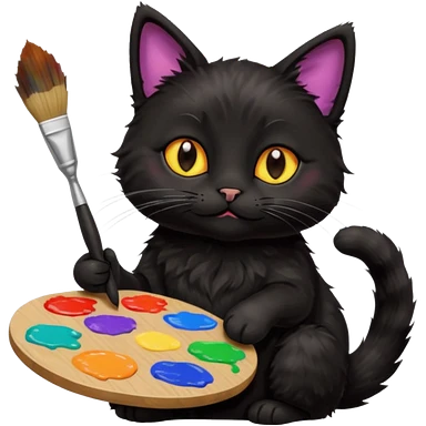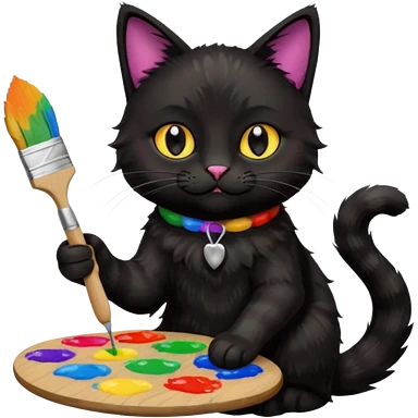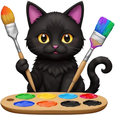 A black cat holding brushes and a colour pallete because he is an artist emoji
