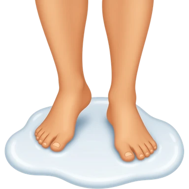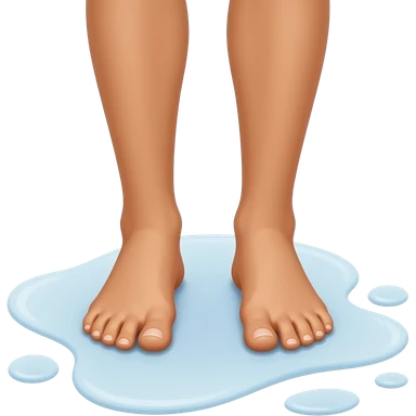 Tanned feet standing in white puddle with knees bent ios emoji