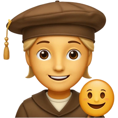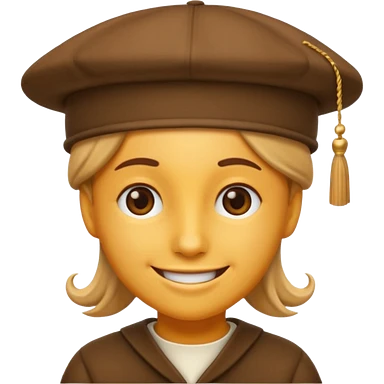 Un emoji rond jaune qui sourit avec un capeau de poète emoji