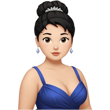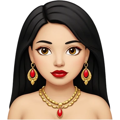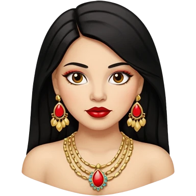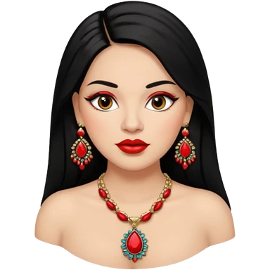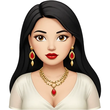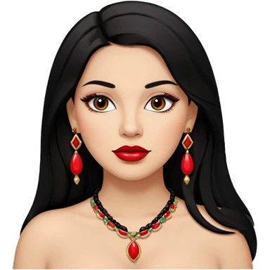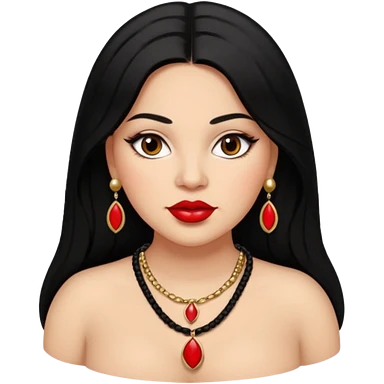 Light skin brown eyes glamorous full figured women black long straight hair red lips necklace and earrings long lashes emoji