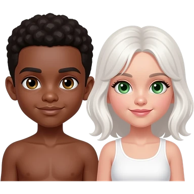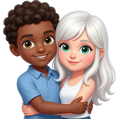 Pareja niño moreno y niña blanca bonitos abrasados emoji