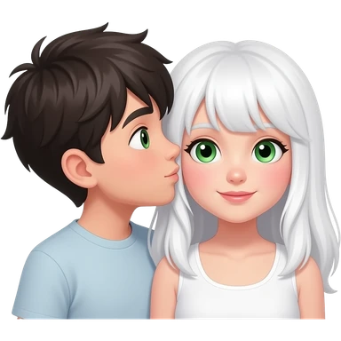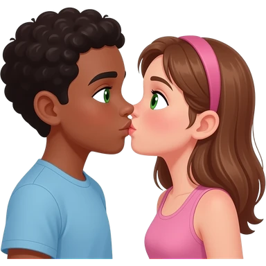 Pareja niño moreno besandose y niña ojos verdes blanca bonitos abrasados emoji