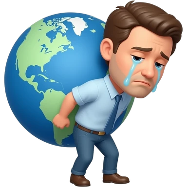 Hombre con el mundo en la espalda con cara de cansado trizte emoji
