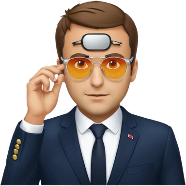 Emanuel Macron avec des lunettes de soleil qui dit : for sur emoji