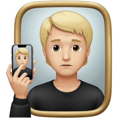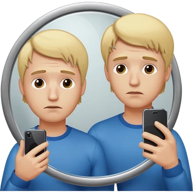 mirror selfie with smartphone sad men blond hairs, dick figure emoji