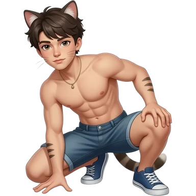 Create a GigaChad boy mirroring as a cat emoji
