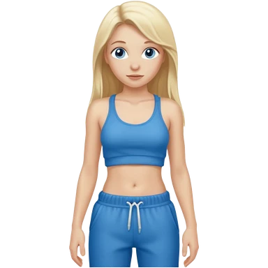 A white girl with long blonde hair with blue eyes topless wearing baggy sewatpants emoji