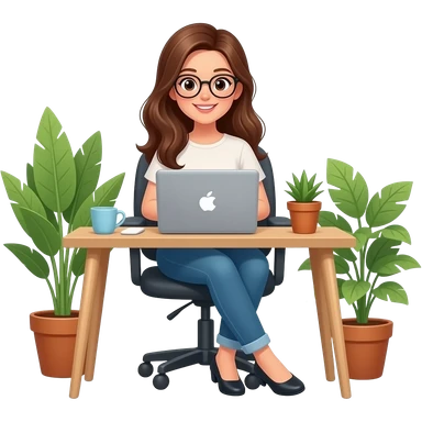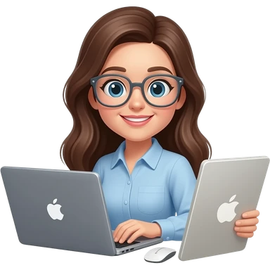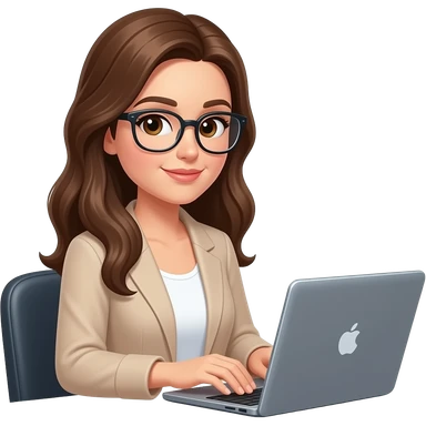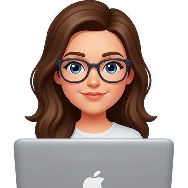 woman with long brown hair working behind her laptop with glasses emoji