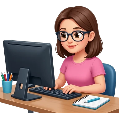 woman working behind her pc with glasses emoji