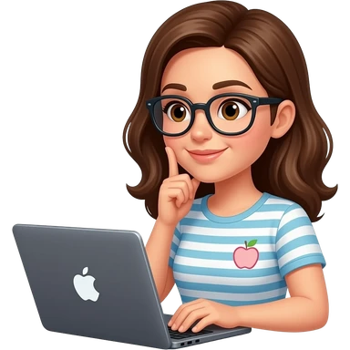apple emoji woman brown hair with brown eyes and glasses thinking with her laptop emoji