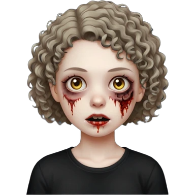 Zombie girl emoji com cabelo curto cacheado com uma blusa preta emoji