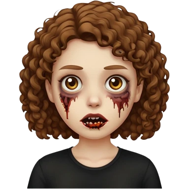 Zombie girl emoji com cabelo curto cacheado castanho com uma blusa preta emoji