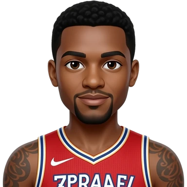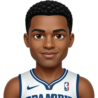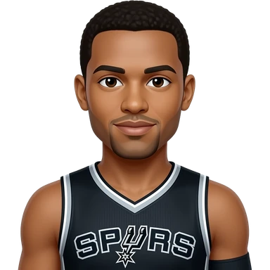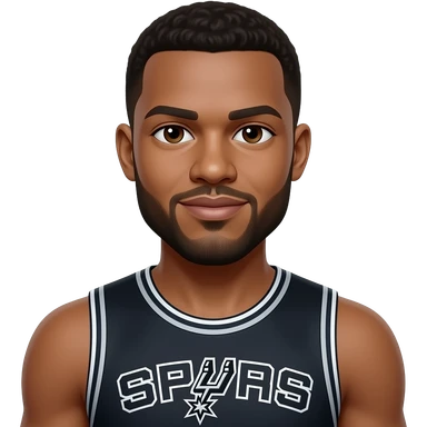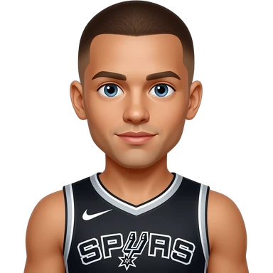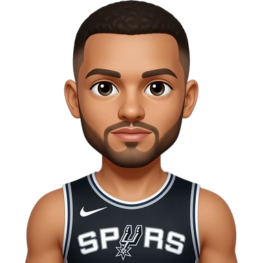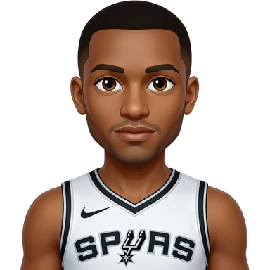 Victor Wembanyama avec un maillot des spurs de san Antonio, il est européen et a la peau blanche, il a une buzz cut sans dégrader il a un bouc et une moustache il a les yeux noir et la tête ovale emoji