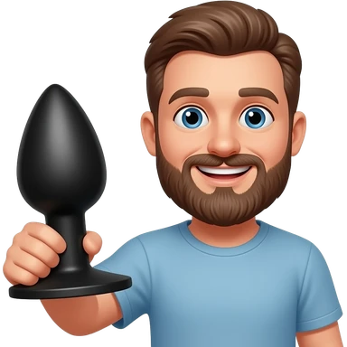 Bearded happy man holding a large black anal plug emoji