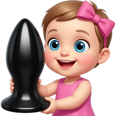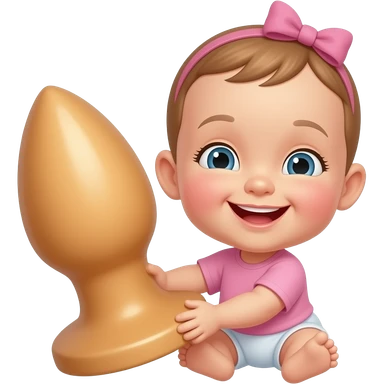 happy baby girl holding a large anal plug emoji