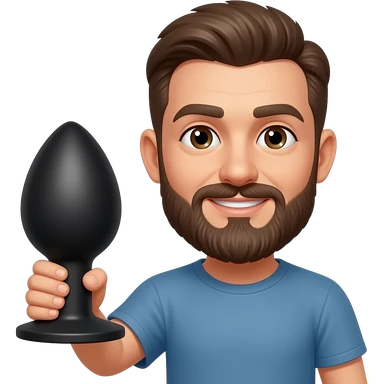 Bearded man holding a large anal plug emoji