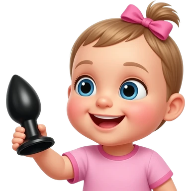 happy baby girl holding a black anal plug emoji