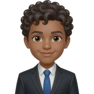 A black haired boy with curly hair, black blazer, blue tie and white shirt emoji