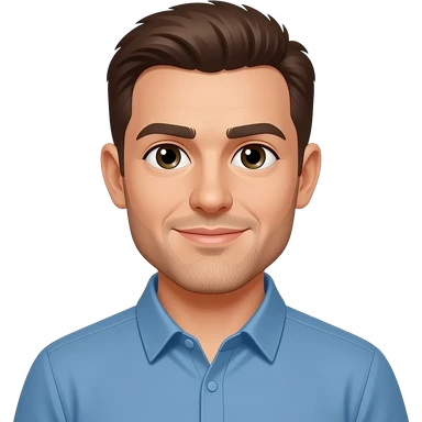 Man in a blue shirt and a brown buzz cut with a brown stubble emoji