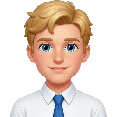 a strawberry blonde boy with subtle freckles and a white shirt with a blue tie emoji