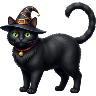 Un gros chat noir aux yeux verts sorcier emoji