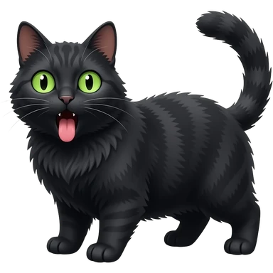Un gros chat noir aux yeux verts qui est choqué avec sa langue qui sort emoji
