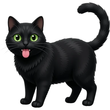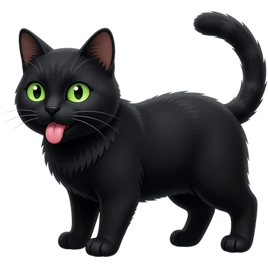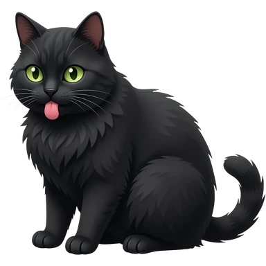 Un gros chat noir aux yeux verts qui est avec sa langue qui sort emoji