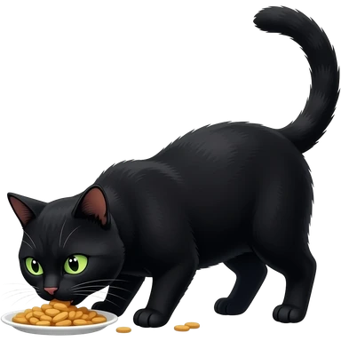 Un gros chat noir aux yeux verts qui mange emoji