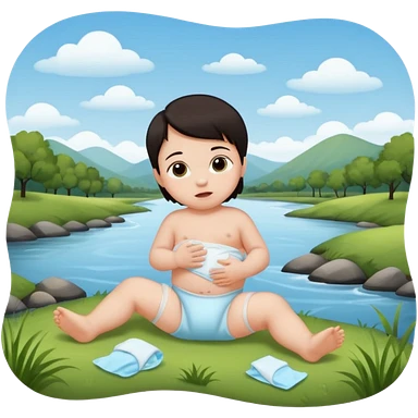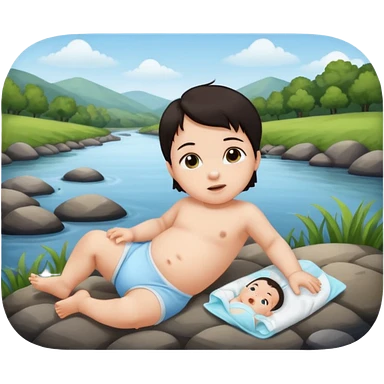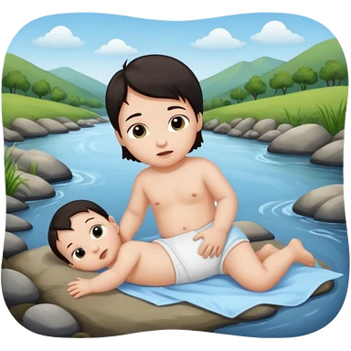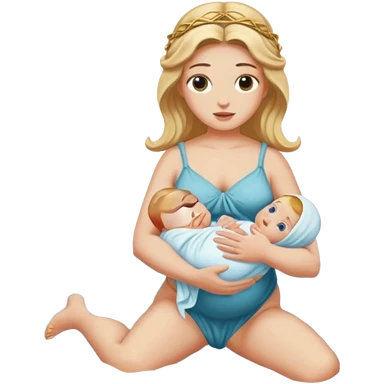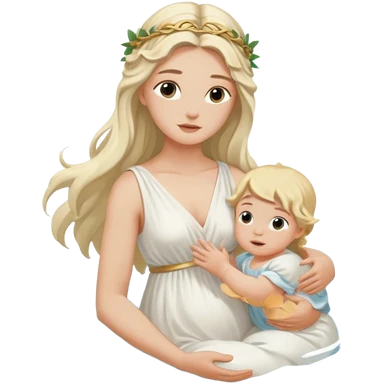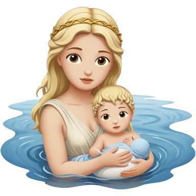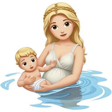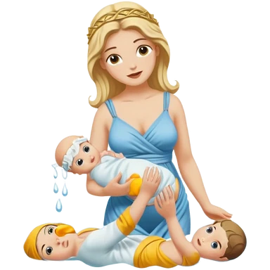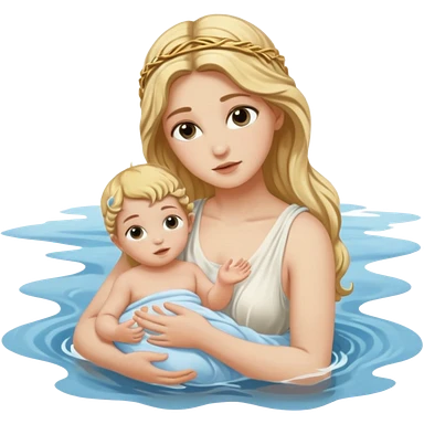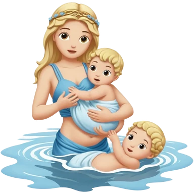 greek goddess dipping baby in river holding baby upside down by ankle emoji
