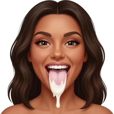 Belle Delphine mouth wide open smiling tongue out viscous thick white liquid on her tongue emoji