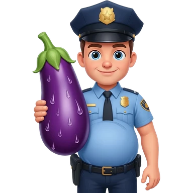 Pregnant man cop holding wet eggplant emoji