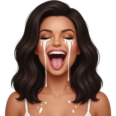 Belle Delphine mouth wide open smiling tongue out viscous thick white liquid on her face emoji