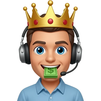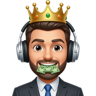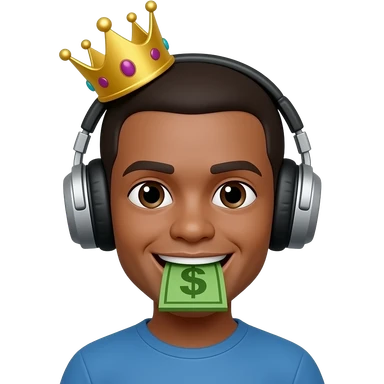Yellow face emoji with a crown green tinge out with money symbol with headphones on emoji