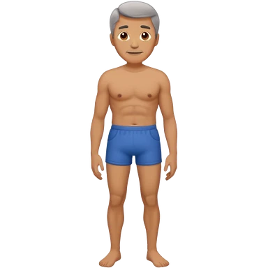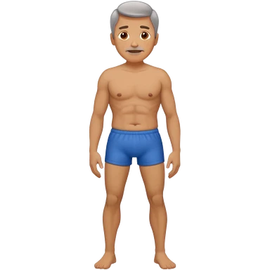 Clothed mature man standing, facing viewer, holding his crotch emoji