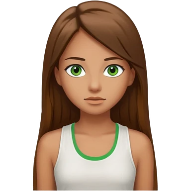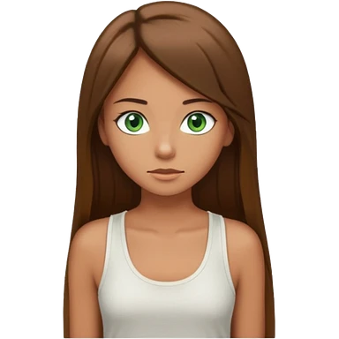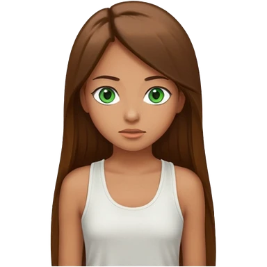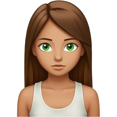 A girl with long brown straight hair, green eyes, and a white tank top; she doesn't have bangs. tan skin emoji