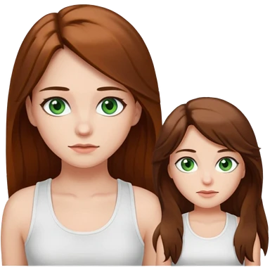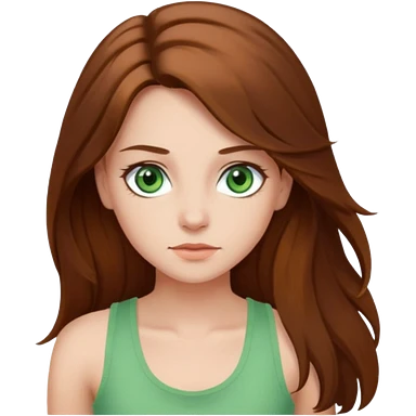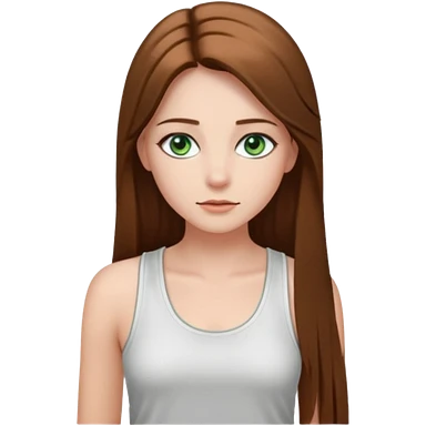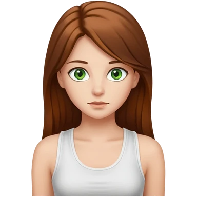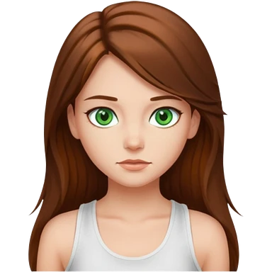 A girl with long brown hair, green eyes, and a white tank top; she doesn't have bangs. emoji