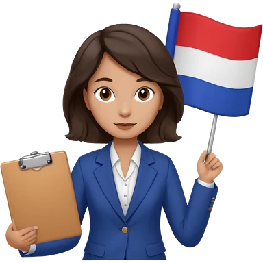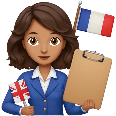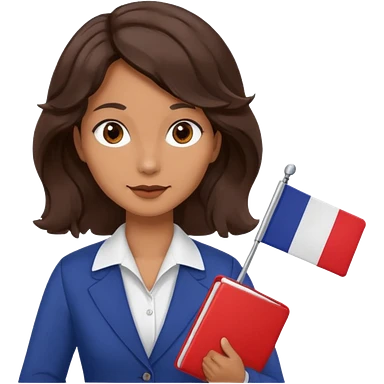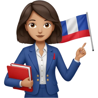 wavy dark brown hair, no glasses, fox dark eyes, with a little file in the hand, being a teacher with a board in the background with a french flag, emoji